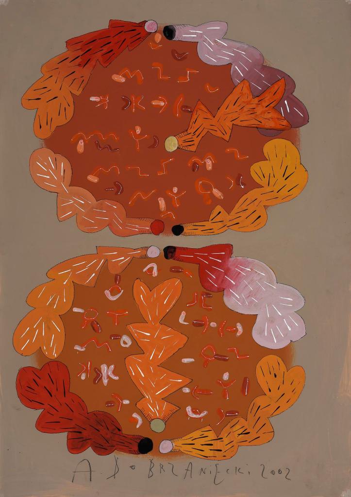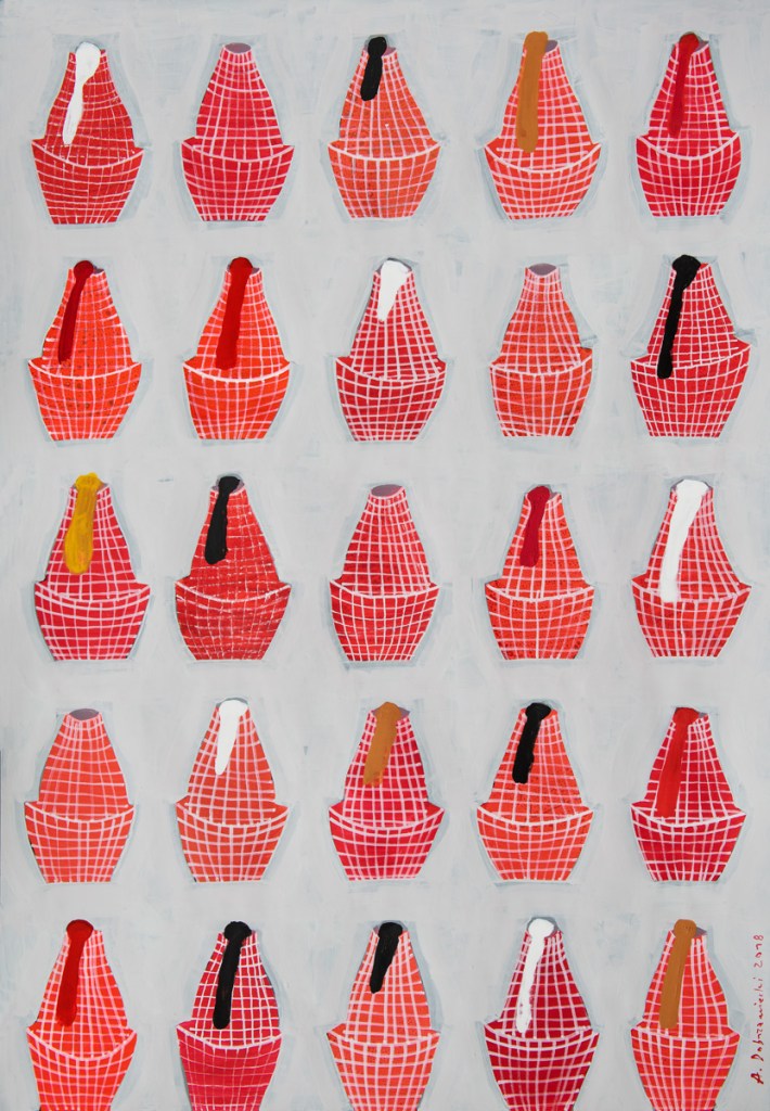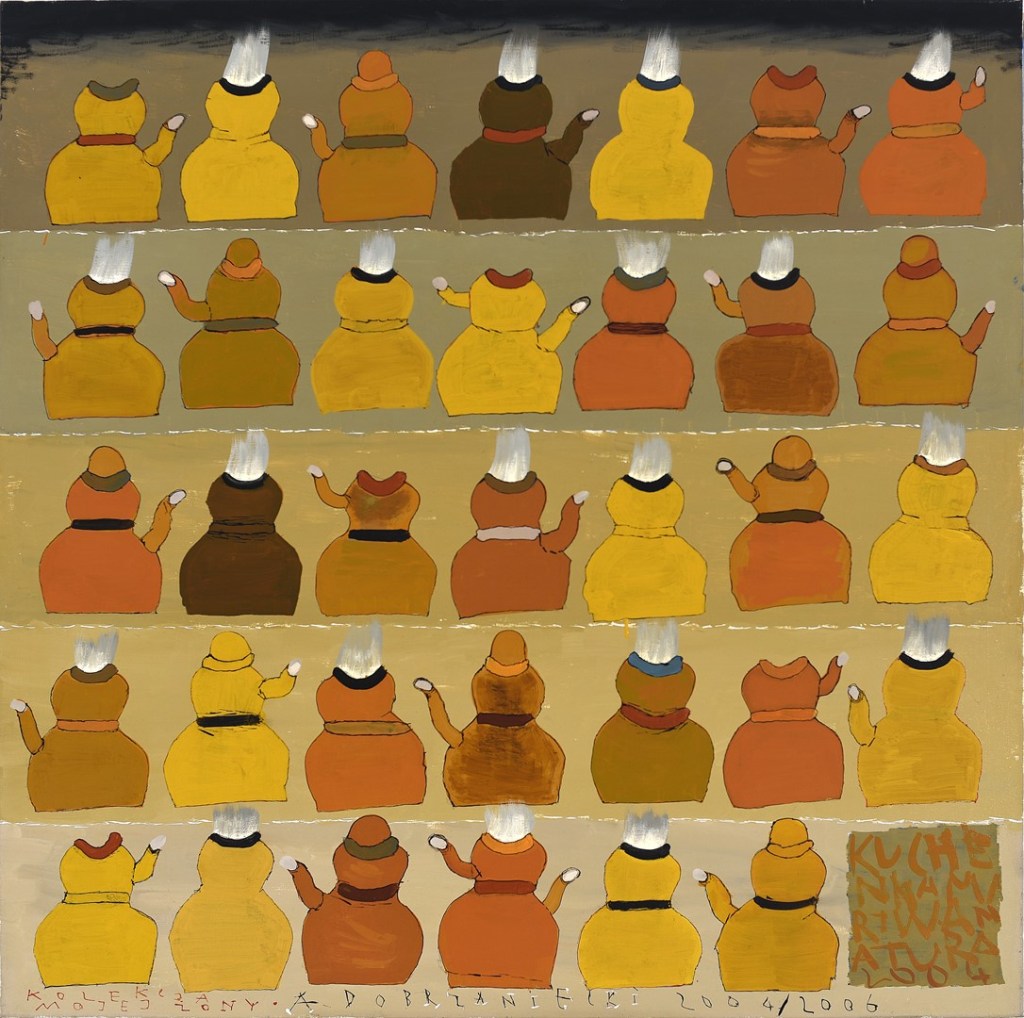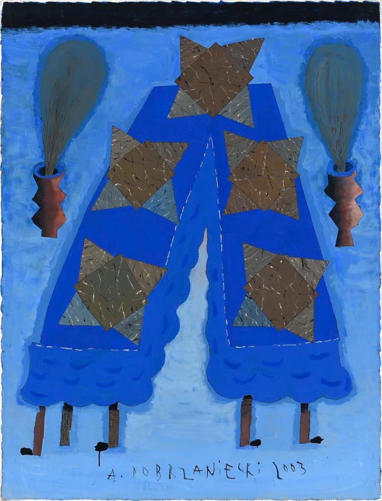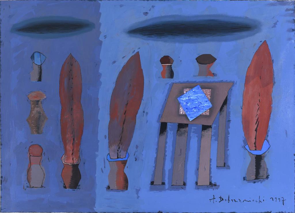 Zabieg powielania miał na celu podkreślenie wagi nawet najbardziej banalnego przedmiotu i był na swój dziecięcy i naiwny sposób jego sakralizacją. Malując Kolekcje artysta stworzył własną hierarchię wartości. W twórczości Dobrzanieckiego przedmiot przez lata nabywał rangę symbolu zawierającego w sobie narrację. I tak w kompozycjach pojawiają przedmioty towarzyszące człowiekowi na co dzień: kafetiery, fajki, doniczki z roślinami, meble, kielichy, naczynia.